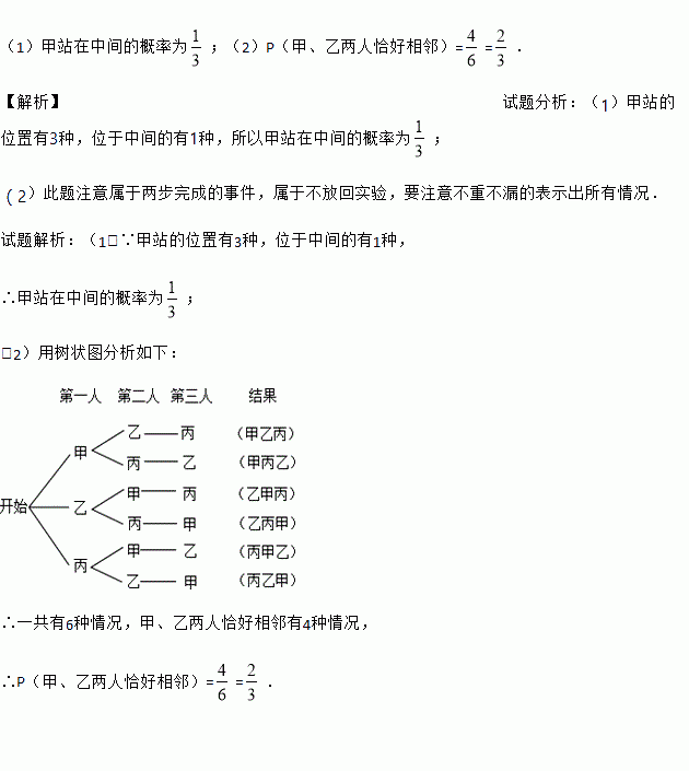 (1)甲站在中间的概率为 ;