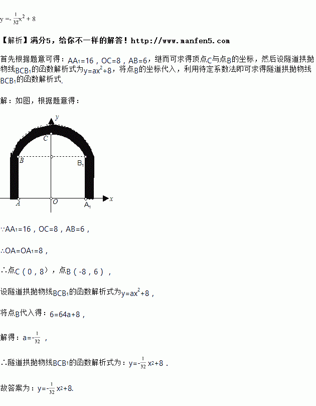 为米;则隧道拱抛物线![]()