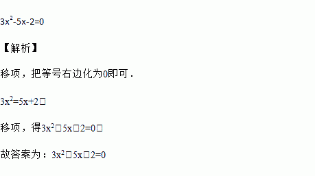 把方程3x2=5x+2化为一元二次方程的一般形式是_____.
