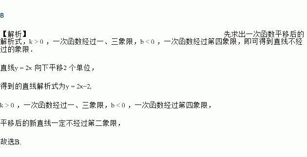 个单位,平移后的新直线一定不经过的象限是( )![]()