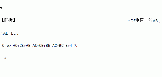 如图,在Rt△ABC中,∠C=90°,AB的垂直平分线交BC于点E,BC=4,AC=3,则△ACE的周长为_____________.