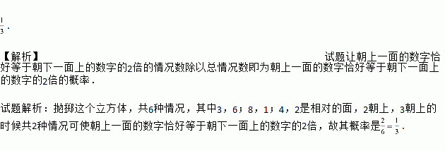 一个均匀的立方体各面上分别标有数字1,2,3,4,6,8,其表面展开图是如图,抛掷这个立方体,则朝上一面的数字恰好等于朝下一面上的数字的2倍的概率是
