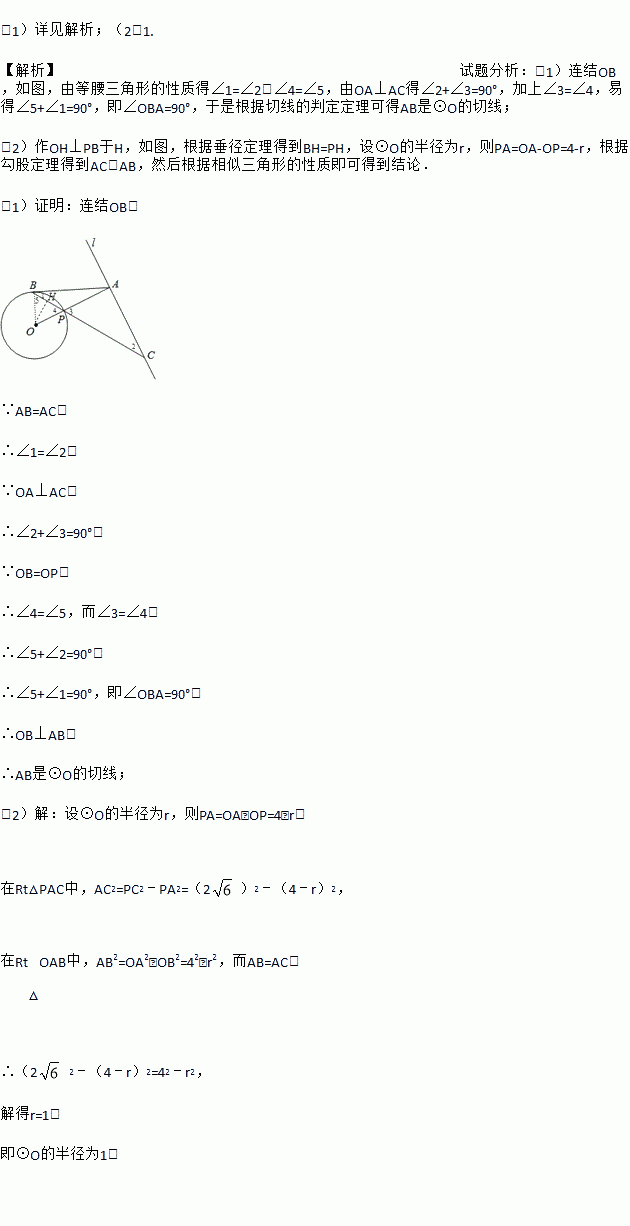 (1)求证:AB是⊙O的切线;