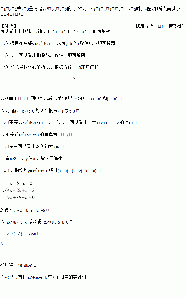 (4)若方程ax2+bx+c=k有两个不相等的实数根,求k的取值范围.