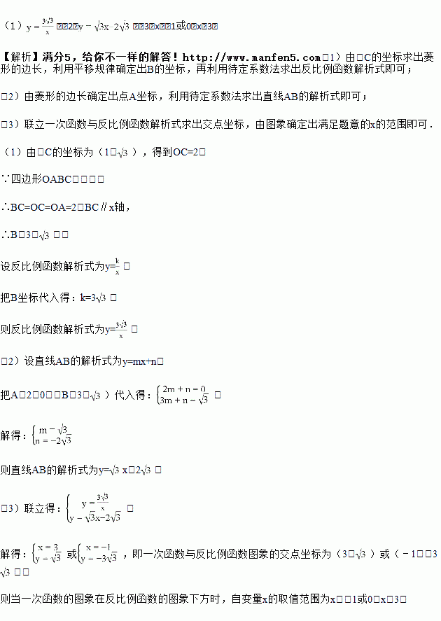 如图,在平面直角坐标系中,点O为坐标原点,菱形OABC的顶点A在x轴的正半轴上,顶点C的坐标为(1,