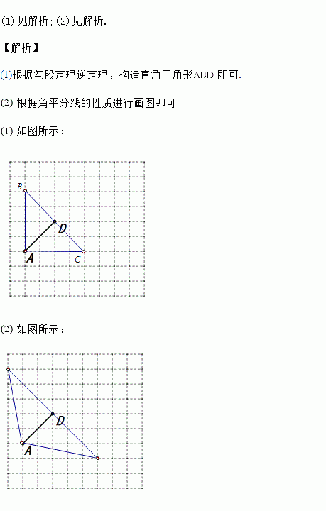 如图,在方格纸中,点A,D都在格点上,作三角形ABC,使其满足下列条件.(点B,C不与点D重合)