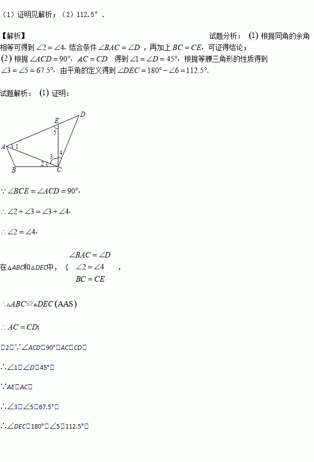如图,已知在四边形ABCD中,点E在AD上,∠BCE=∠ACD=90°,∠BAC=∠D,BC=CE.