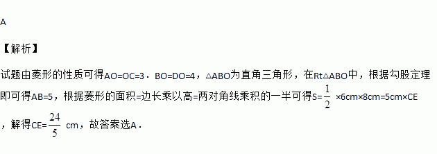 如图,在菱形ABCD中,,,则菱形AB边上的高CE的长是
