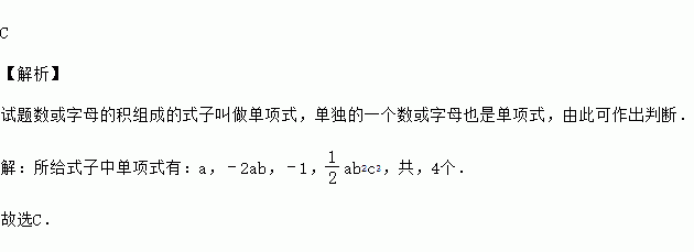 下列代数式 a,﹣2ab,x+y,x2+y2,﹣1,ab2c3中,单项式共有( )