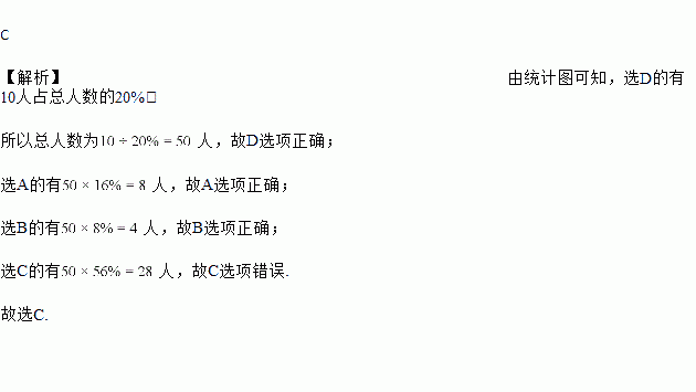 A. 选A的有8人 B. 选B的有4人