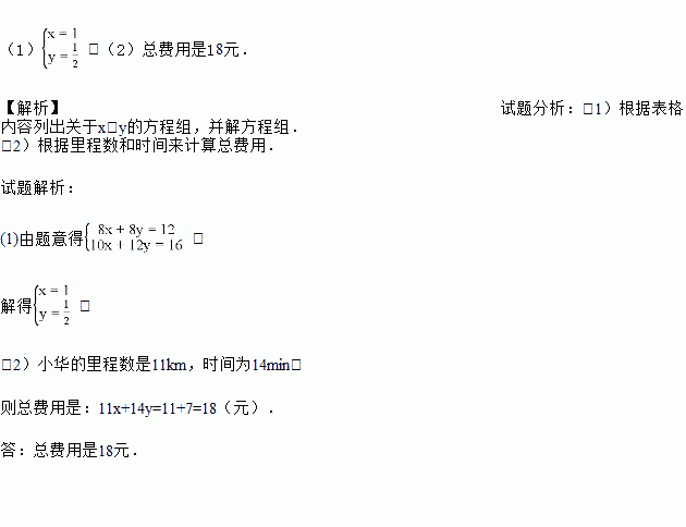 (2)如果小华也用该打车方式,打车行驶了11公里,用了14分钟,那么小华的打车总费用为多少?