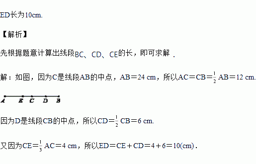 已知线段AB=24cm,点C是线段AB的中点,点D是线段CB的中点,点E在线段AB上,且CE=AC,画出草图并计算DE的长.