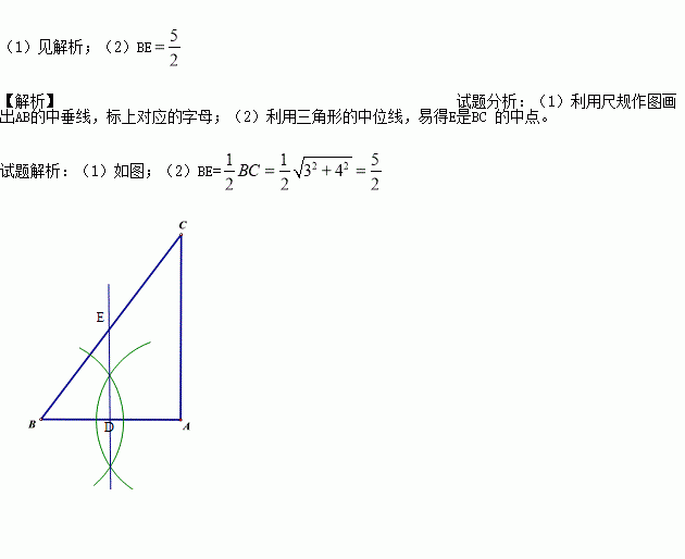 (1)用尺规作出边AB的中垂线交AB于点D,交BC于点E