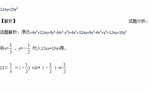 化简求值:(2x+3y)2-(2x+y)(2x-y),其中x=,y=.