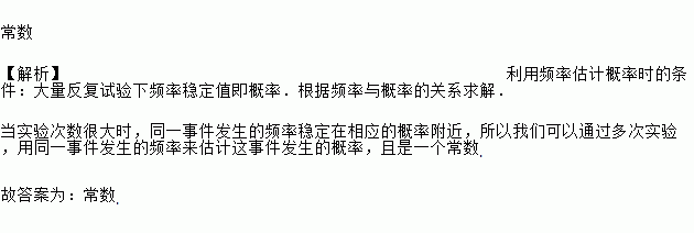 当试验次数很大时,某一事件的频率会在一个_____附近摆动,称为频率的稳定性.