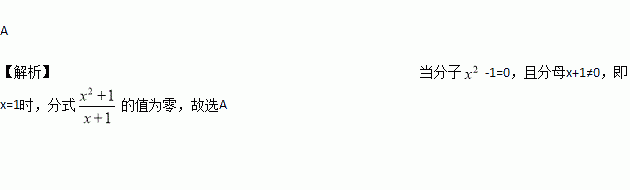 A 【解析】当分子-1=0,且分母x+1≠0,即x=1时,分式的值为零,故选A下列各等式中,正确的是( )
