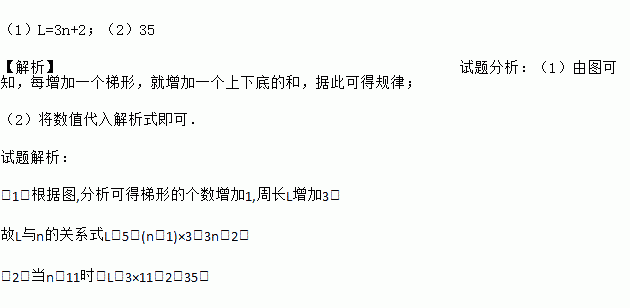(1)设图形的周长为L,梯形的个数为n,试写出L与n的关系式;