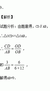 如图,小明用长为3m的竹竿CD做测量工具,测量学校旗杆AB的高度,移动竹竿,使竹竿与旗杆的距离DB=12m,则旗杆AB的高为 m.