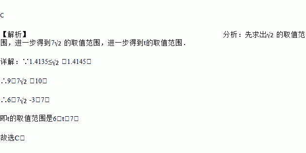 如果t=7﹣3,那么t的取值范围是( )
