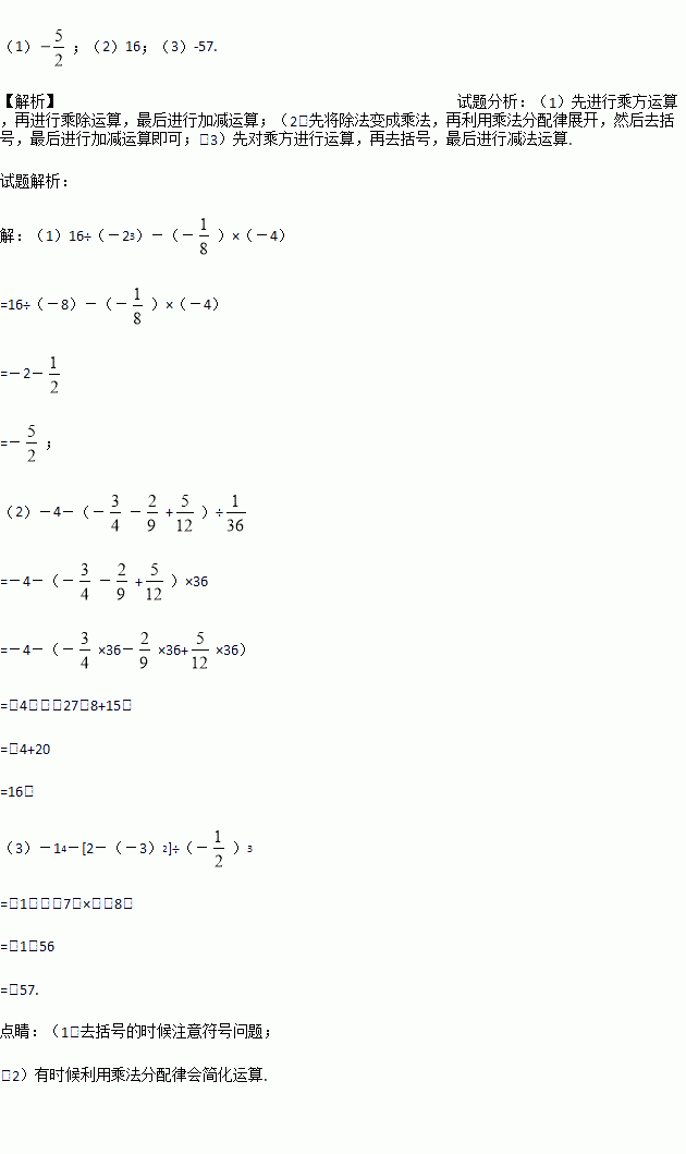 (3)﹣14﹣[2﹣(﹣3)2]÷(﹣)3.
