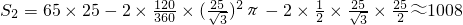 公园B草坪的面积=大矩形的面积-两个扇形的面积-扇形所夹的两个三角形的面积.