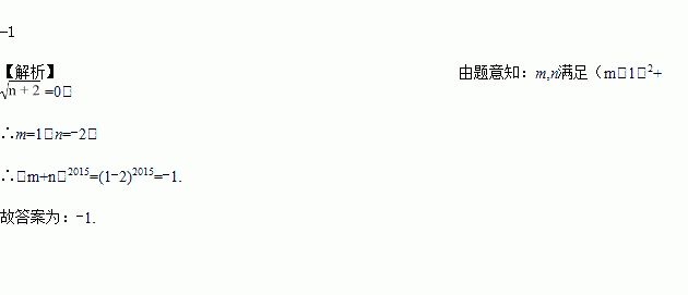若(m﹣1)2+=0,则(m+n)2015的值是______.