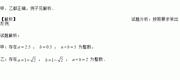甲:存在两个不相等的非整数的有理数,它们商是整数;