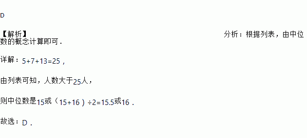 C. 中位数是15或15.5 D. 中位数可能是16