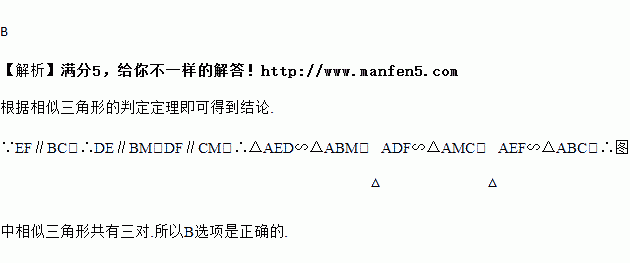 如图,点,分别在的边,上,且,点在边上,与交于点,则图中相似三角形共有( )