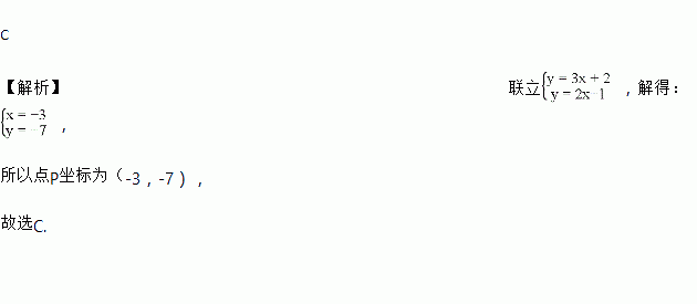 已知函数 y =3 x +2与 y =2 x -1的图象交于点 P ,则点 P 的坐标是 ( )