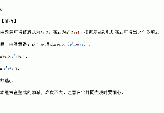 一个多项式与x2﹣2x+1的和是3x﹣2,则这个多项式为( )