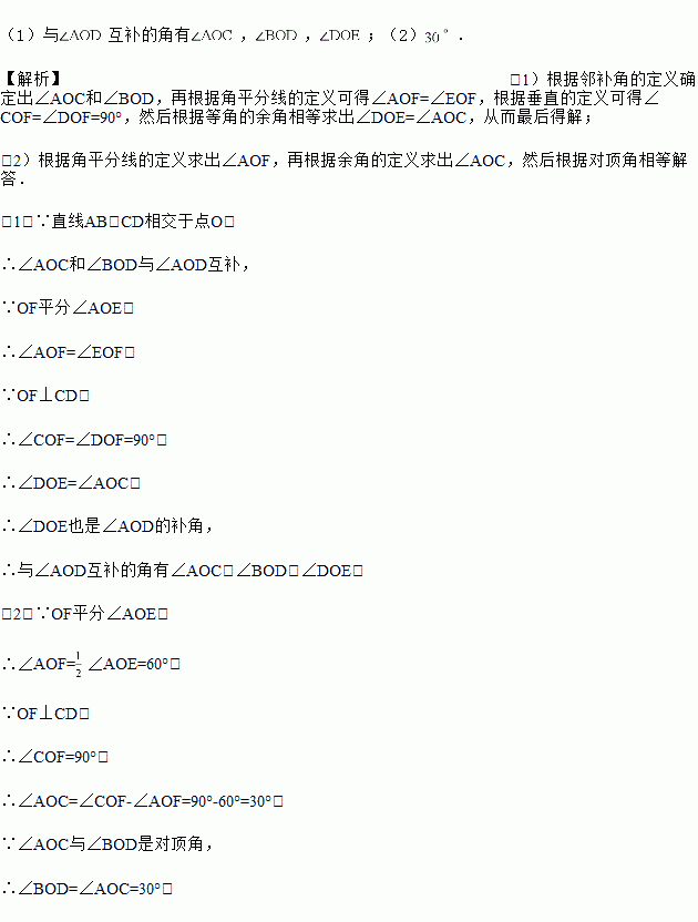 如图,直线AB,CD相交于点O,OF平分,,垂足为O.