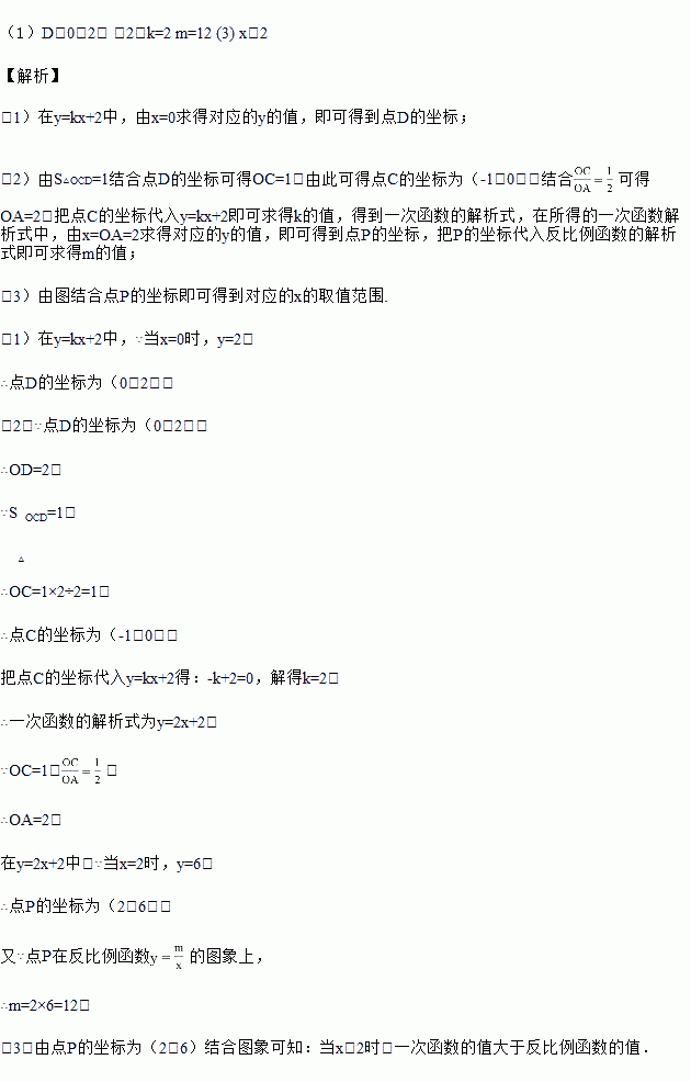 的图象在第一象限的交点为P,PA⊥x轴于点A,PB⊥y轴于点B,函数y=kx+2的图象分别交x轴,y轴于点C,D,已知△OCD的面积S△OCD=1,