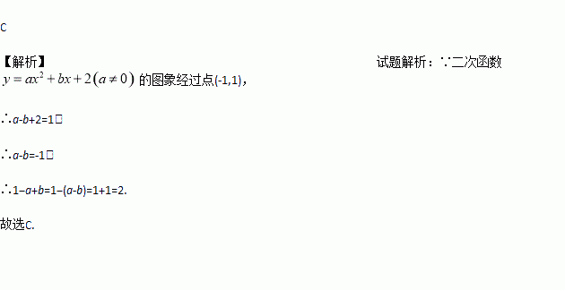 二次函数 y=ax²+bx+2(a≠0)的图像经过点(-1,1)则代数 1-a+b 的值为( )
