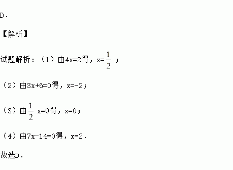 A.4x=2 B.3x+6=0 C. D.7x-14=0