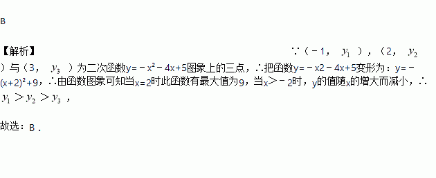 (-1, ),(2, )与(3, )为二次函数图象上的三点,则, , 的大小关系是( )