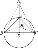 (2)当90°<∠BAC<180°时,点A在⊙D内部;