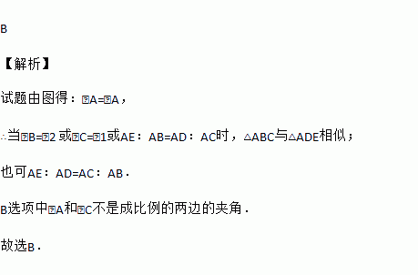 如图,无法保证△ADE与△ABC相似的条件是( )