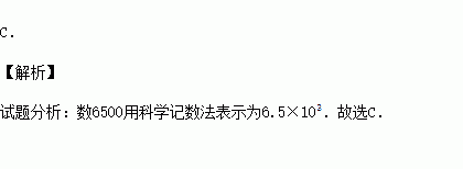 北京时间5月27日,蛟龙号载人潜水器在太平洋马里亚纳海沟作业区开展了本航段第3次下潜,最大下潜深度突破6500米,数6500用科学记数法表示为( )