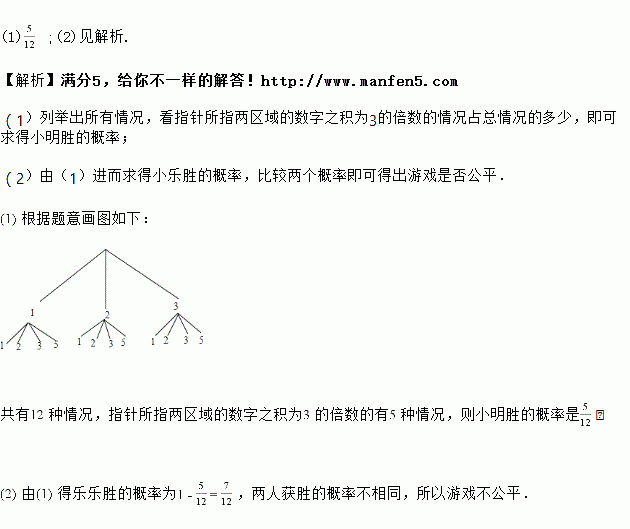 的倍数,则小明胜;否则,小乐胜.(若有指针落在分割线上,则无效,需重新转动转盘)![]()