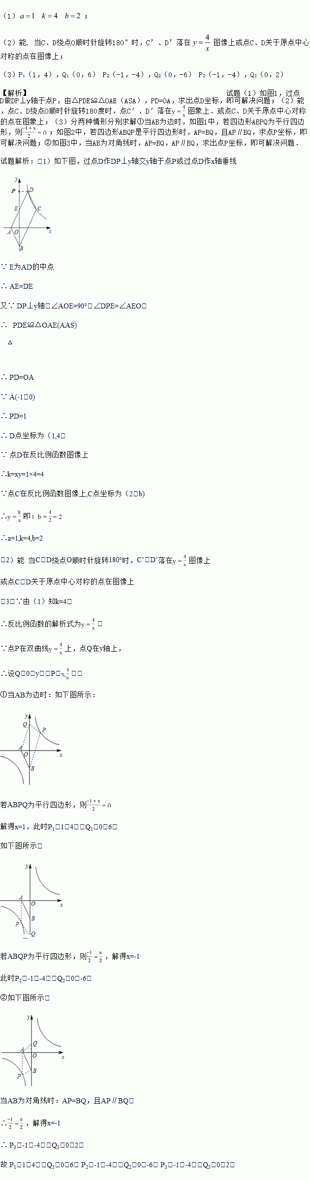 (3)如图3,点P在双曲线y=