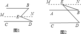 (2)如图2,点E是AB,CD外一点且AB∥CD,结论有什么变化?
