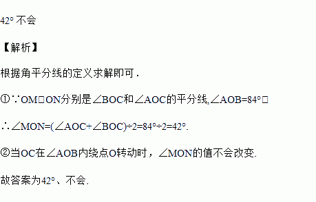 如图,OM,ON分别是∠BOC和∠AOC的平分线,∠AOB=84°.(1)∠MON=_____;