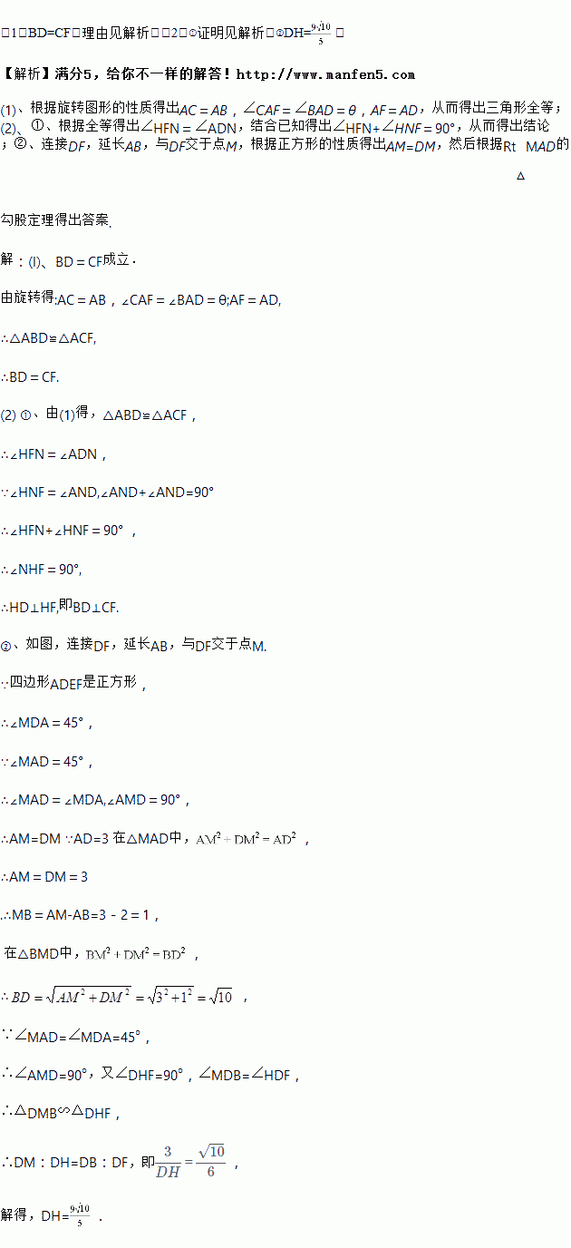 (2)当△ABC绕点A逆时针旋转45°时,如图3,延长BD交CF于点H.
