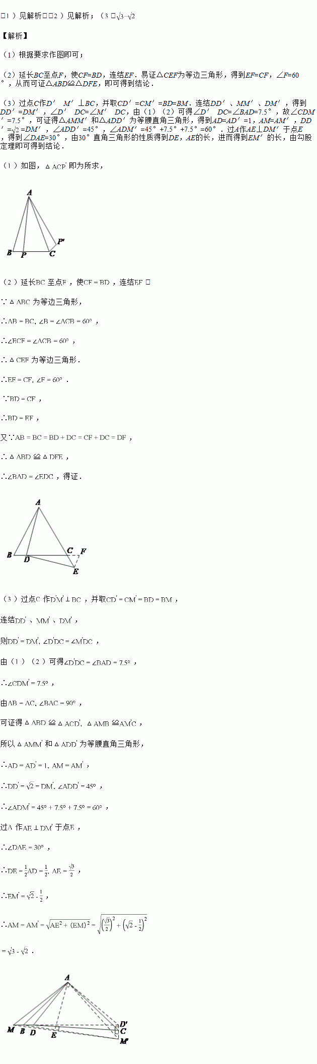 长的具体思路(即添加辅助线的方法,推导的具体步骤详写,其它的写出关键步骤或结果即可),并给出最后结果.![]()
