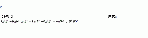 (2017·长安区期中)计算:(2ab2)3-(9ab2)(-ab2)2,结果正确的是( )