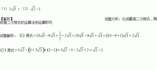 形如的化简,只要我们找到两个数a、b使a+b=m,ab=n,这样, ,那么便有(a>b)