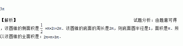 一个圆锥的侧面展开图是半径为2的半圆,则该圆锥的全面积是______.