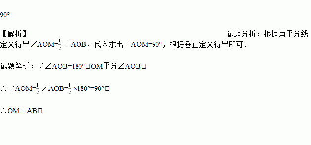 如图所示,射线OM与直线交于点O,OM平分∠AOB,求∠AOM度数,并用符号表示OM与AB的位置关系.