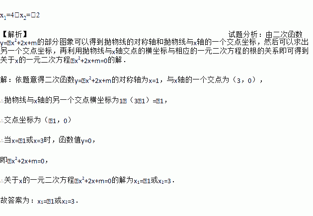 已知二次函数y=﹣x2+2x+m的部分图象如图所示,则关于x的一元二次方程﹣x2+2x+m=0的解为_____.